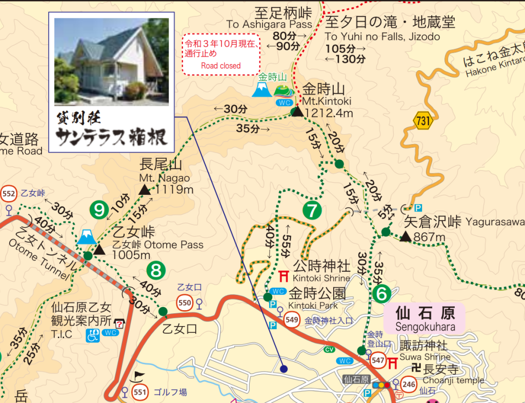 ルート:乙女峠バス停→金時山山頂→金時神社入口バス停